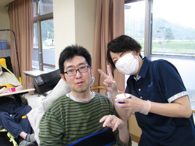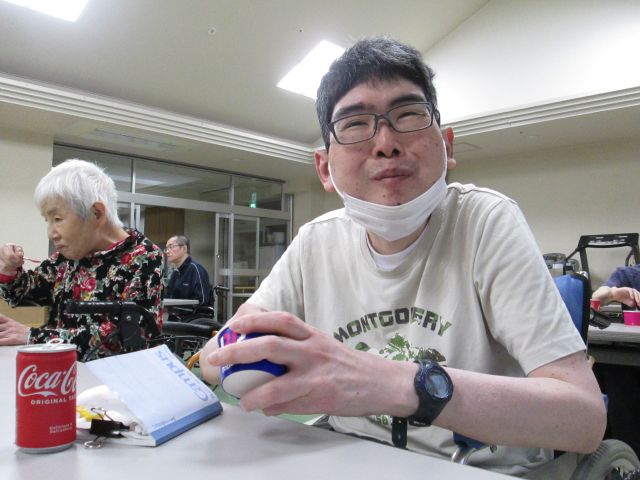 5月24日(土)数年ぶりに自治会喫茶が行われました。利用者の皆さんで組織する自治会で話し合い計画された行事です。メニューはアイス&ドリンクセット。当日は、自治会の役員さんを中心にウエイターやウエイトレスの仕事もこなされていました。