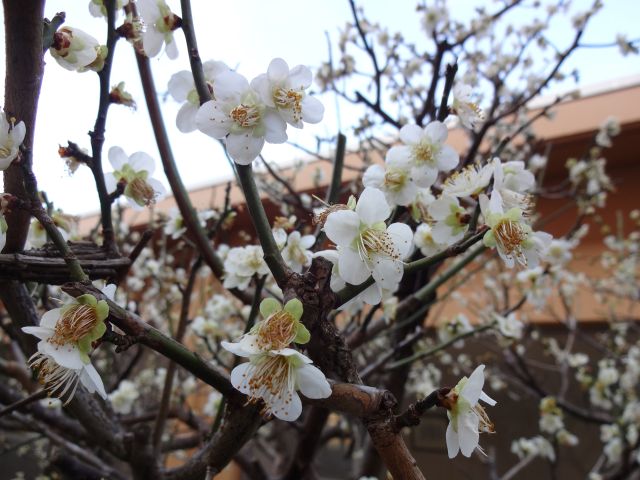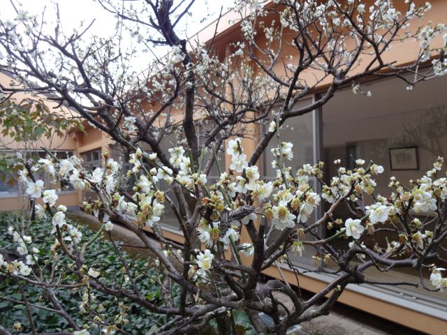 施設の梅が咲きました。